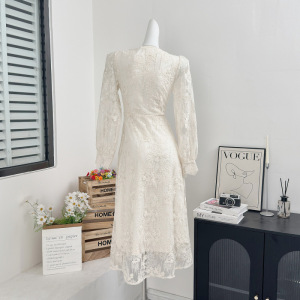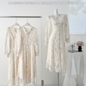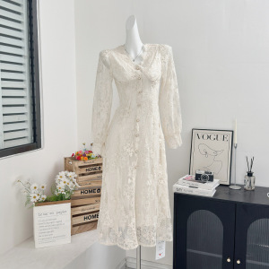 特别漂亮掐腰小裙子韩系独特超好看V领收腰连衣裙25秋季气质长裙