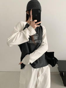 TG 休闲搞怪卡通印花撞色插肩袖宽松T恤女2025秋季新款上衣25843