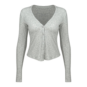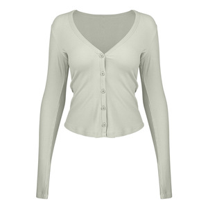 2025秋冬瑜伽服女天丝莫代尔螺纹外套高弹透气运动长袖V领健身服