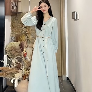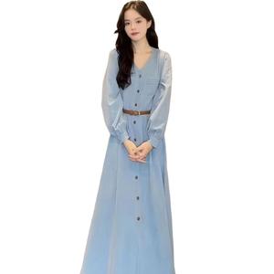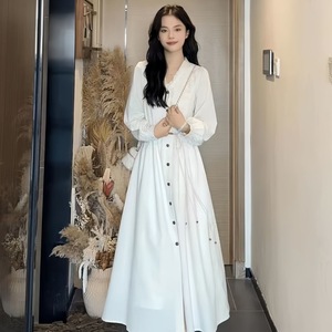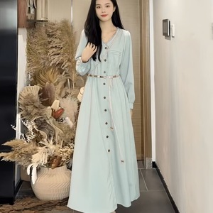 小香风气质连衣裙女春秋2025新款温柔风V领小众宽松显瘦漂亮裙子