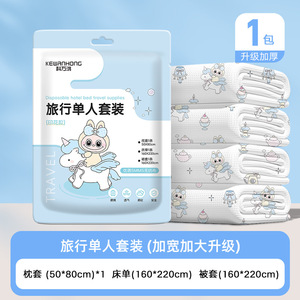 旅行一次性印花四件套床单加厚无纺布被套枕套旅游酒店印花四件套