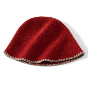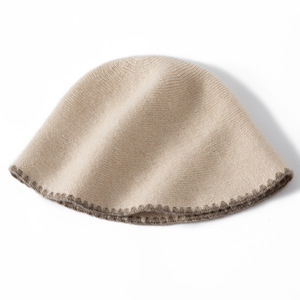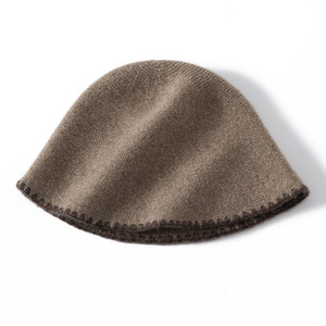 新款秋冬山羊绒盆帽女时尚休闲护耳堆堆帽无檐拼色针织帽子渔夫帽