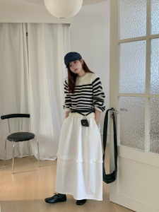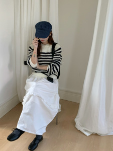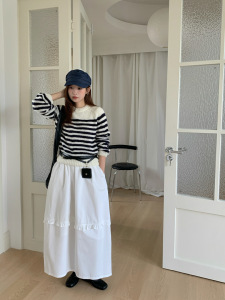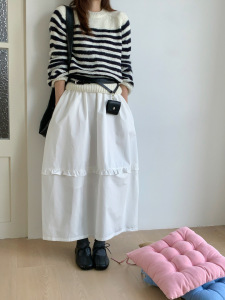 GAGD 韩系氛围穿搭木耳拼接半裙女 少女感简约气质温柔茧型花苞裙