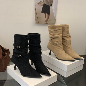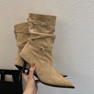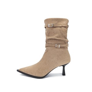 738-1秋冬季新款欧美细跟尖头堆堆靴西部牛仔骑士复古女式短靴