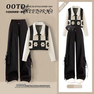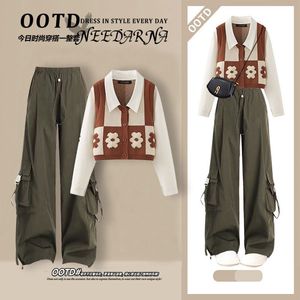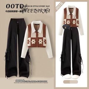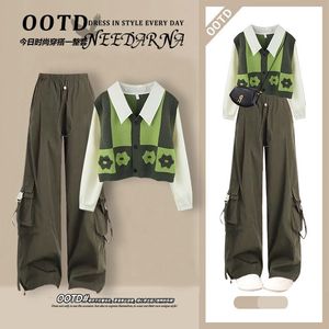 2025新款时尚大码套装女穿搭假两件长袖上衣搭配气质工装裤两件套
