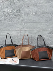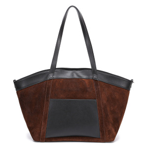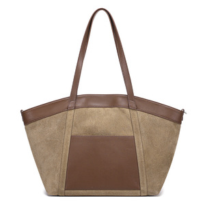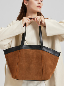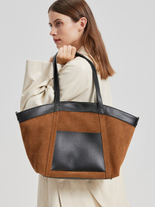 磨砂牛皮气质简约百搭拼接通勤2025秋冬新款单肩手提大容量女包包