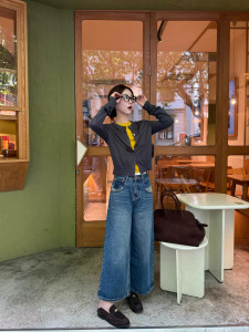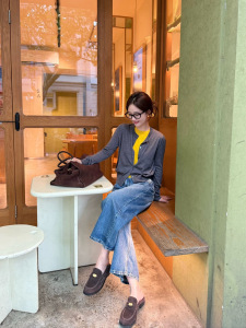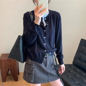 0911-161抗起球羊毛miu系圆领薄款撞色假两件针织衫短款显瘦开衫