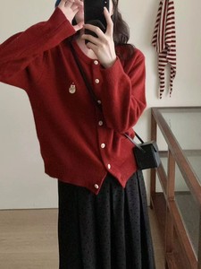 韩系慵懒风宽松刺绣小熊毛衣外套胖mm2025年冬大码甜美针织开衫女
