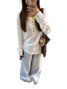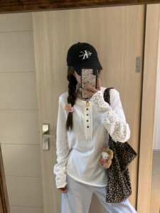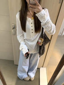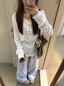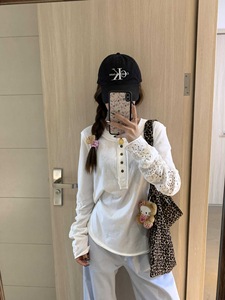 白色蕾丝镂空刺绣亨利领长袖t恤女春季2025新款夏季防晒罩衫上衣