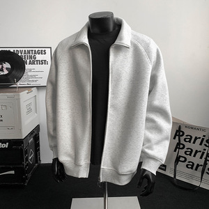 重磅立领夹克外套男秋冬款美式高街宽松开衫开衫卫衣春季百搭上衣