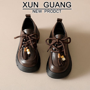 真皮厚底乐福鞋女2025秋冬新款百搭增高松糕单鞋小个子高跟小皮鞋