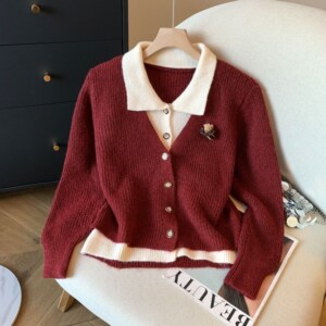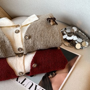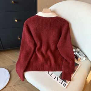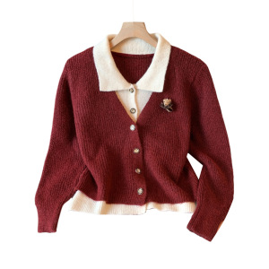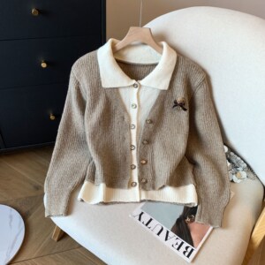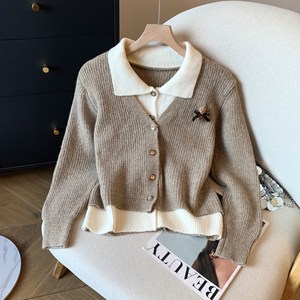假两件翻领毛衣外套女2025秋冬新款立体小熊宽松显瘦气质针织开衫