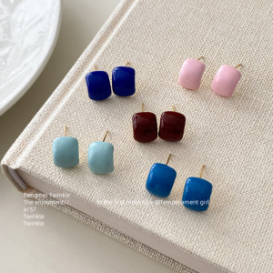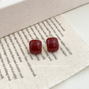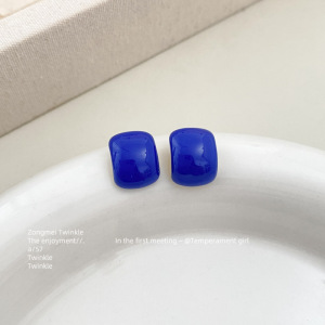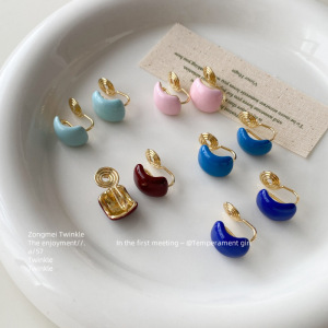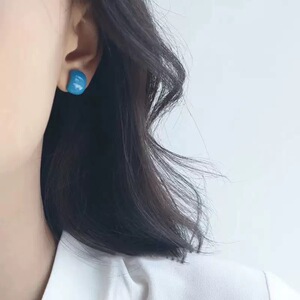 【宝蓝与奶绿】超显白宝蓝色酒红珐琅釉豆豆耳钉耳夹蚊香盘无耳洞