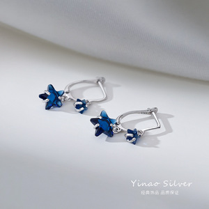 蓝色星星耳环女2025爆款轻奢高级感清新甜美百搭个性时尚小巧耳饰