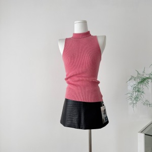 甜辣纯欲辣妹粉色无袖针织衫背心女2025初秋新款高领修身上衣