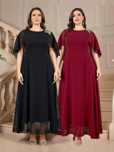 跨境电商亚马逊爆款大码连衣裙 外贸tiktok欧美女士纯色大码长裙