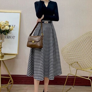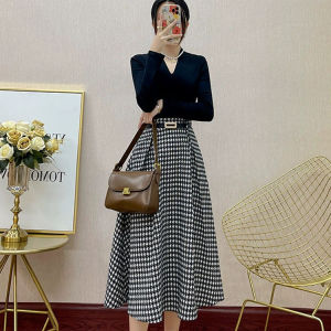 法式千鸟格半身裙穿搭套装2025春秋小香风时尚洋气裙子两件套裙