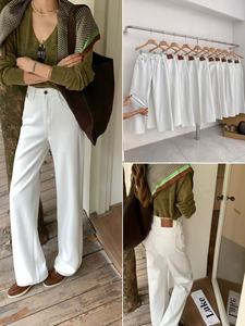 秋TOP欧制广州十三行韩版简约通勤百搭四面弹窄板阔腿牛仔裤13308