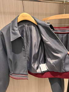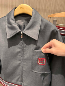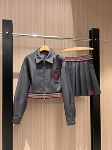 高版本【深圳南油】MIU系套装长袖夹克+百褶裙减龄学院风螺纹拼接