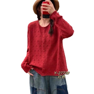 新品勾花针织毛衣女 复古文艺时尚镂空开衫毛衣外套