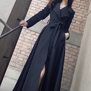 超长过膝风衣2025新款气质修身长款显瘦系带收腰春秋外套大码