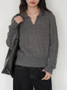EIGHTHMONTH灰色polo领麻花毛衣女冬季宽松复古套头外穿针织上衣