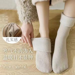 加绒加厚保暖雪地袜秋冬季吸汗透气毛圈中筒地板袜大地色长筒袜