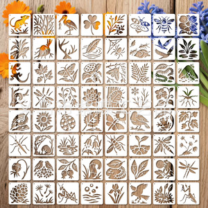 厂家现货批发花草昆虫64张镂空画跨境墙绘涂鸦diy松果瓢虫镂印花