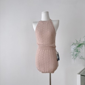 针织套装女秋气质挂脖无袖上衣包臀半裙短裙两件套2025秋季新款