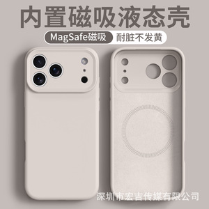 适用iPhone17ProMax精孔液态硅胶磁吸手机壳苹果16纯色肤感保护套