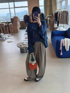 早秋新款高腰宽松显瘦直筒拖地天丝阔腿宽松挺括休闲裤
