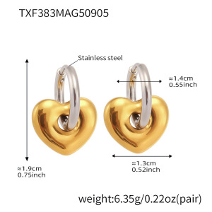 TXF383-拼钢色爱心耳环