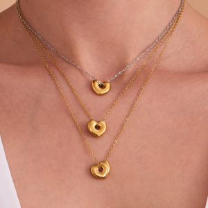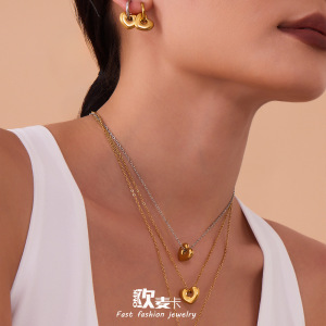 欧麦卡跨境时尚新款不锈钢爱心吊坠锁骨项链耳环组合套装镀18k金
