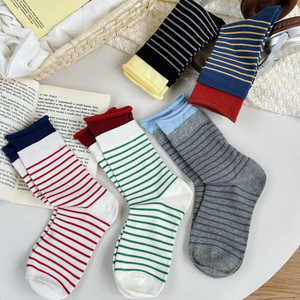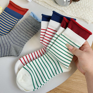 TuTu韩系学院风撞色条纹中筒袜