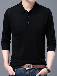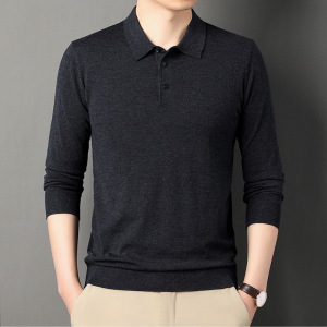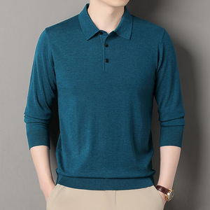 2025春秋季毛衣男士纯色翻领毛衫中年套头polo针织衫男跨境