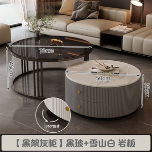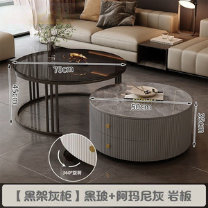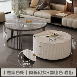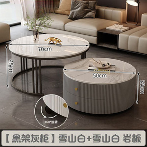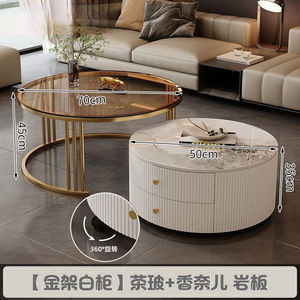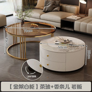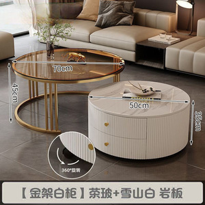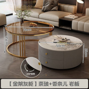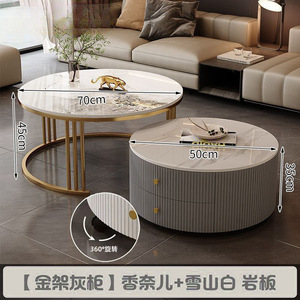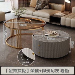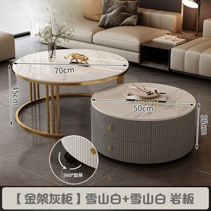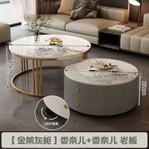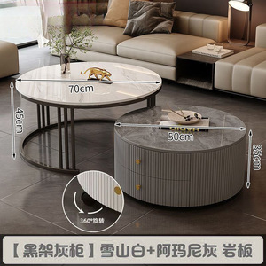 全套岩板茶几客厅家用简约现代新款北欧网红大理石小户型轻奢圆形