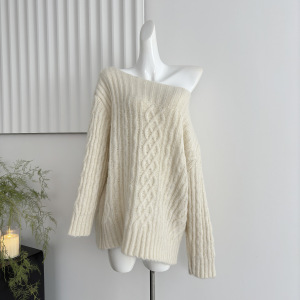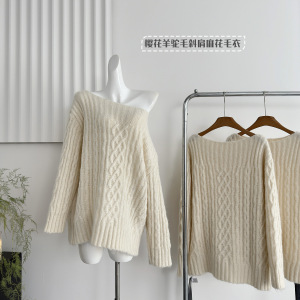 温柔甜美女友风羊驼毛斜肩麻花毛衣女秋冬套头上衣2025秋季新款