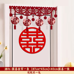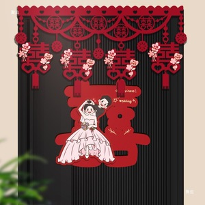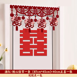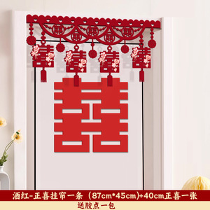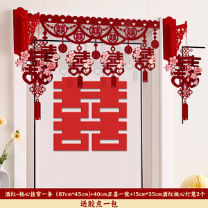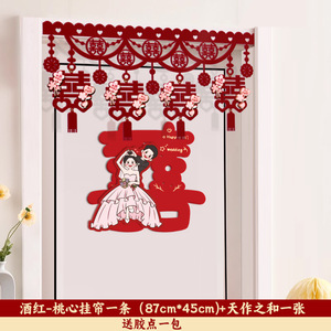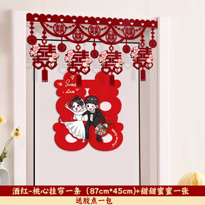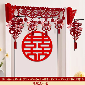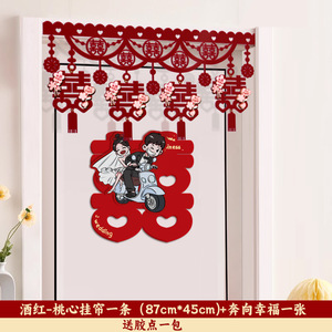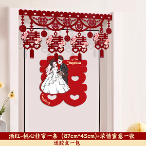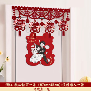 结婚门帘婚房布置套装女方喜字男方卧室挂帘门口新房婚庆用品门楣