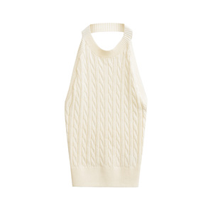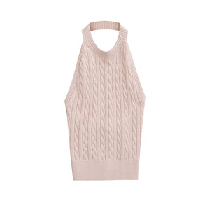复古露背麻花薄针织短款圆领挂脖上衣女2025秋季新款打底无袖背心