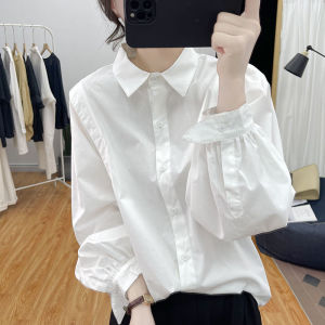 新品灯笼袖长袖衬衫女春秋季韩国宽松减龄上衣复古打底衫衬衣2025