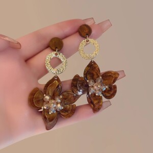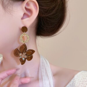 复古美拉德花朵耳环轻奢高级感夸张气质耳钉时尚个性度假风耳饰女