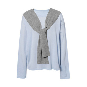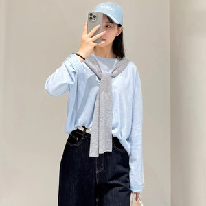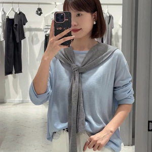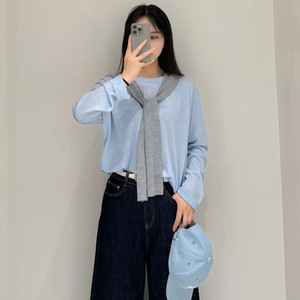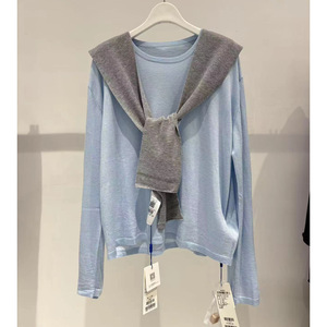 MM披肩羊毛圆领针织衫女2025年秋季蓝色新潮休闲毛衣叠穿套头毛衫