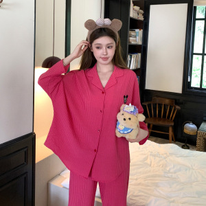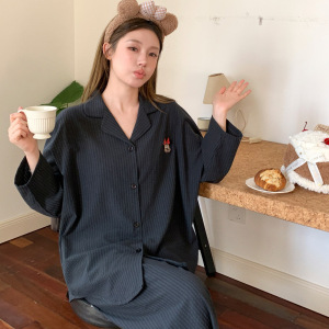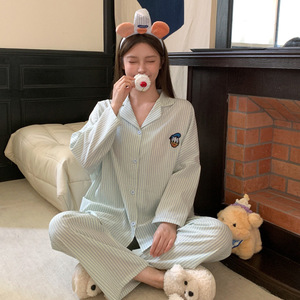 韩版简约宽松家居服套装翻领舒适亲肤秋季长袖睡衣女纯棉可外穿