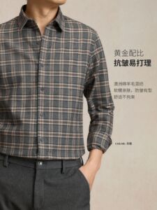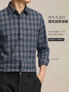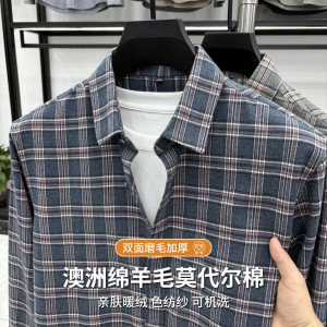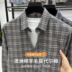 男士商务休闲长袖格子衬衫秋冬季新款简约时尚男装纯棉衬衣外套