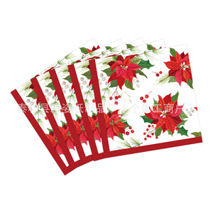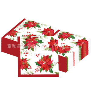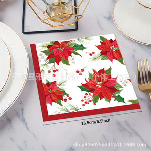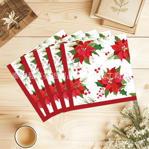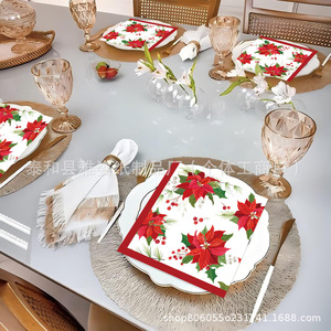 2025新款亚马逊圣诞节红色大红花主题派对餐巾纸场景布置装饰用品