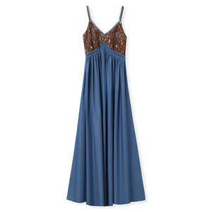 新中式2025早秋新款时尚吊带裙女装高级色织提花设计牛仔裙 N7029