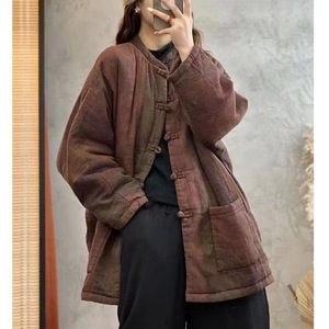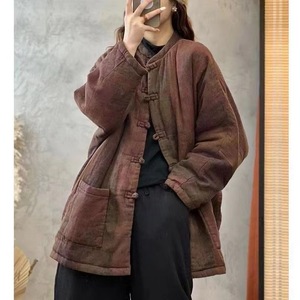 复古印花夹棉加厚棉袄外套女2025年冬季新款宽松休闲舒适保暖棉服