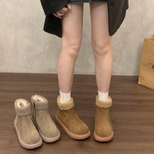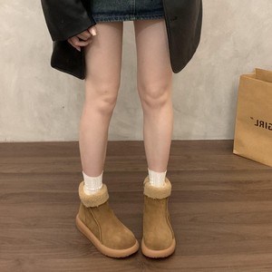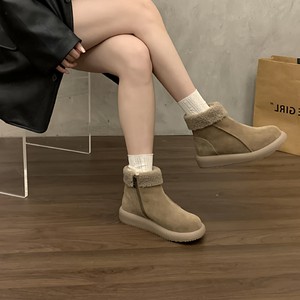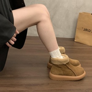 法式复古磨砂真皮羊羔毛保暖雪地靴女2025冬季新款加绒短筒靴棉靴
