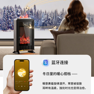 蓝牙音乐取暖器香薰加湿暖风机AI智能遥控家用节能省电3D仿真火焰