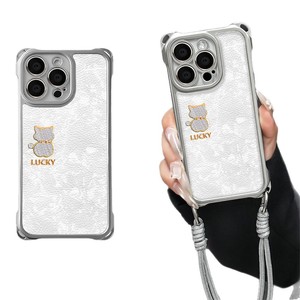 幸运猫咪适用苹果17手机壳16pro苹果15ProMax情侣款14带挂绳13